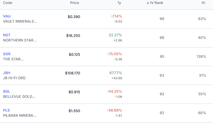 Implied Volatility within the ASX is mixed. We expect IV expansion leading into Full-Year Earnings season starting in August, however many stocks already have IV's higher than previous earnings peaks due to Macro Madness. This still creates opportunities to sell premium and benefit from inflated premiums.