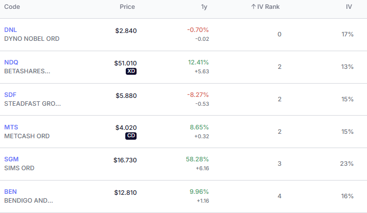 Lowest IVR Stocks